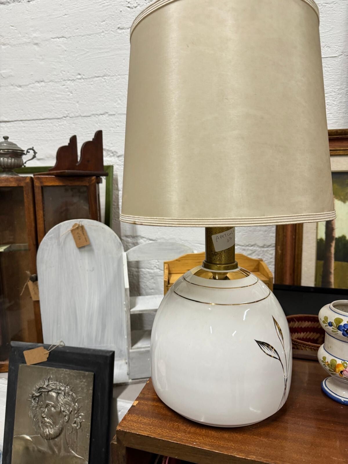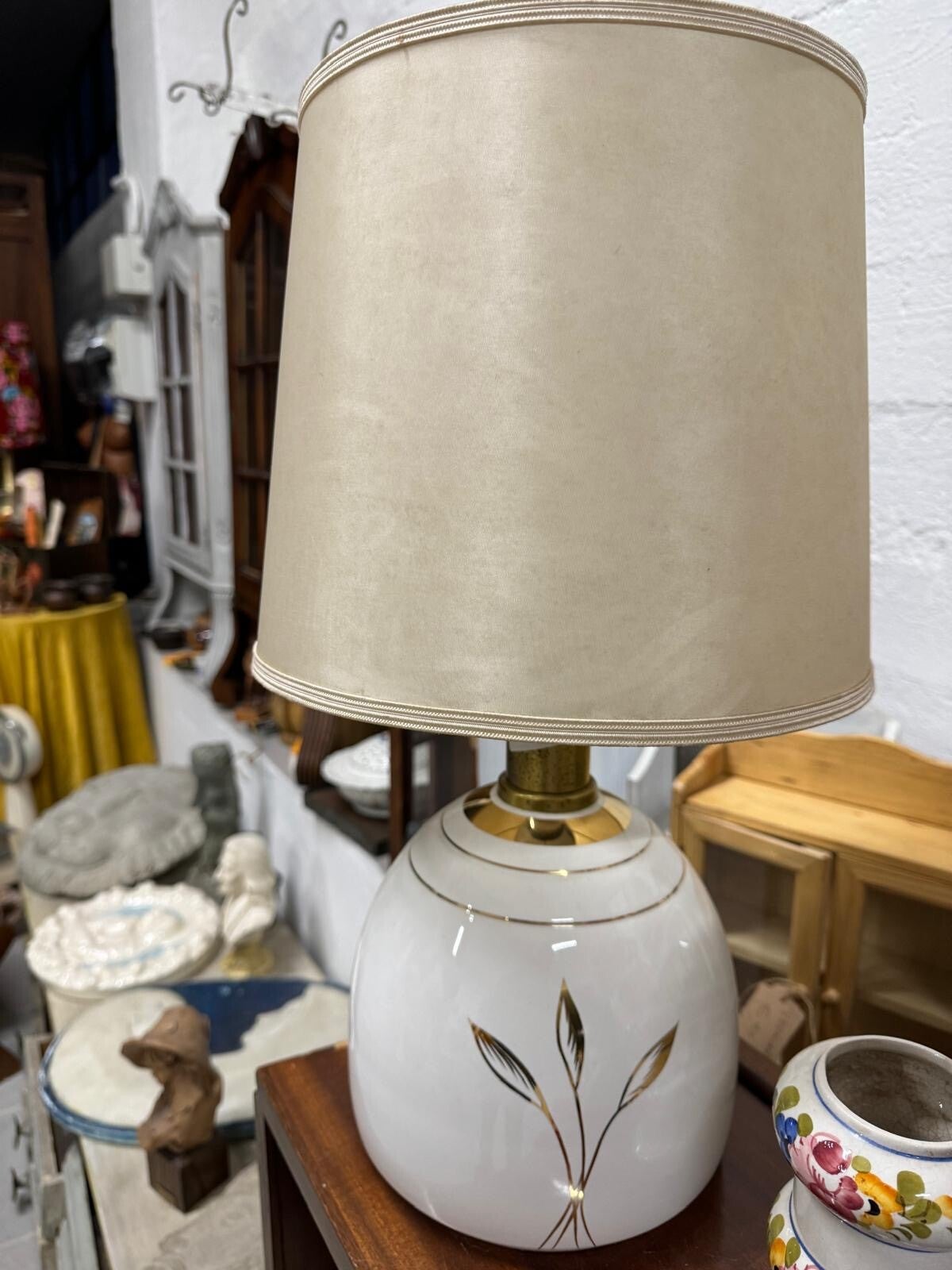 Lampada in ceramica retrò con paralume satinato