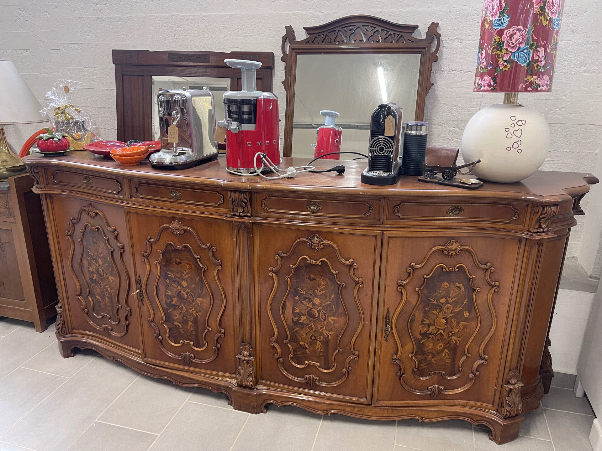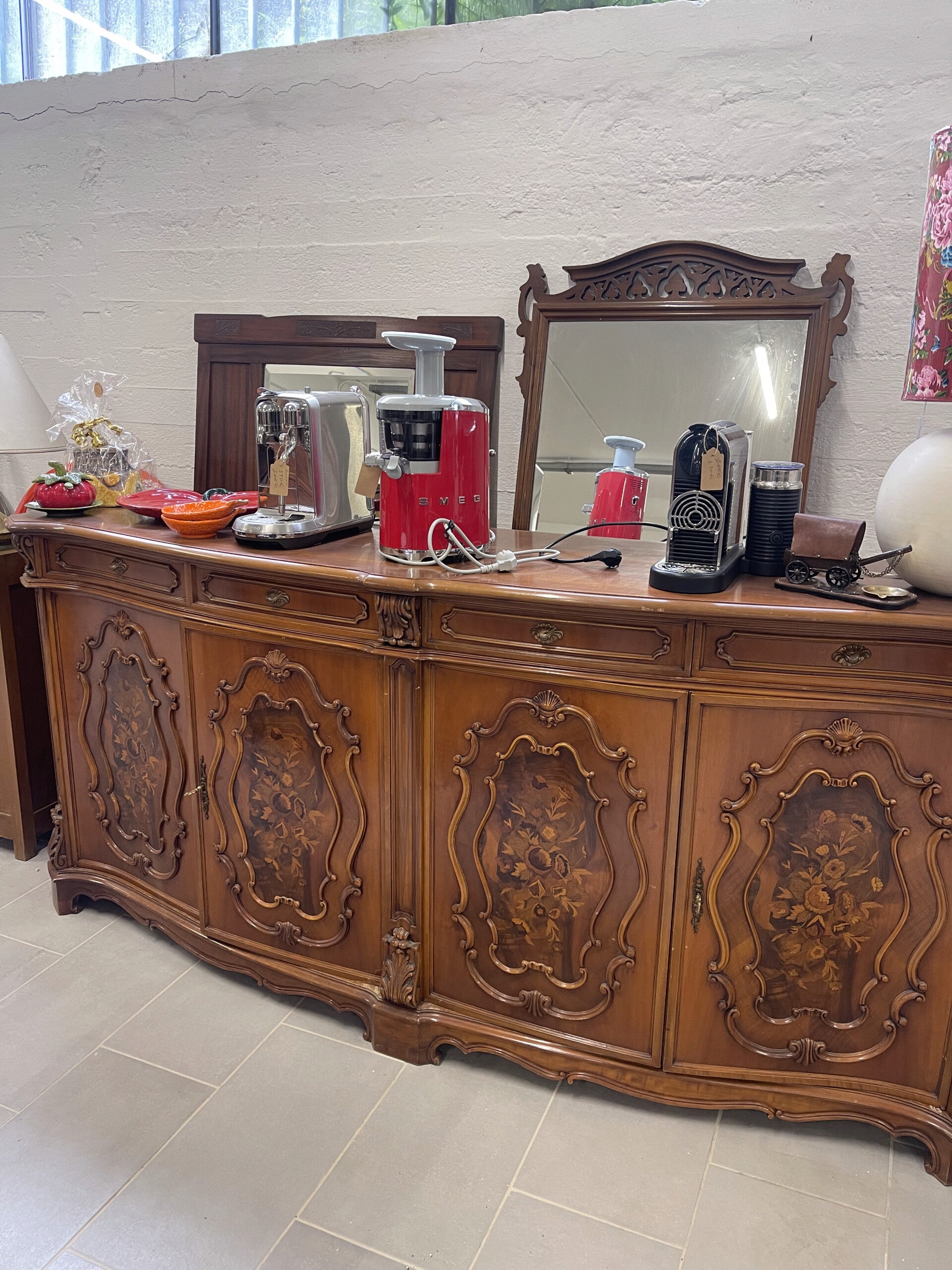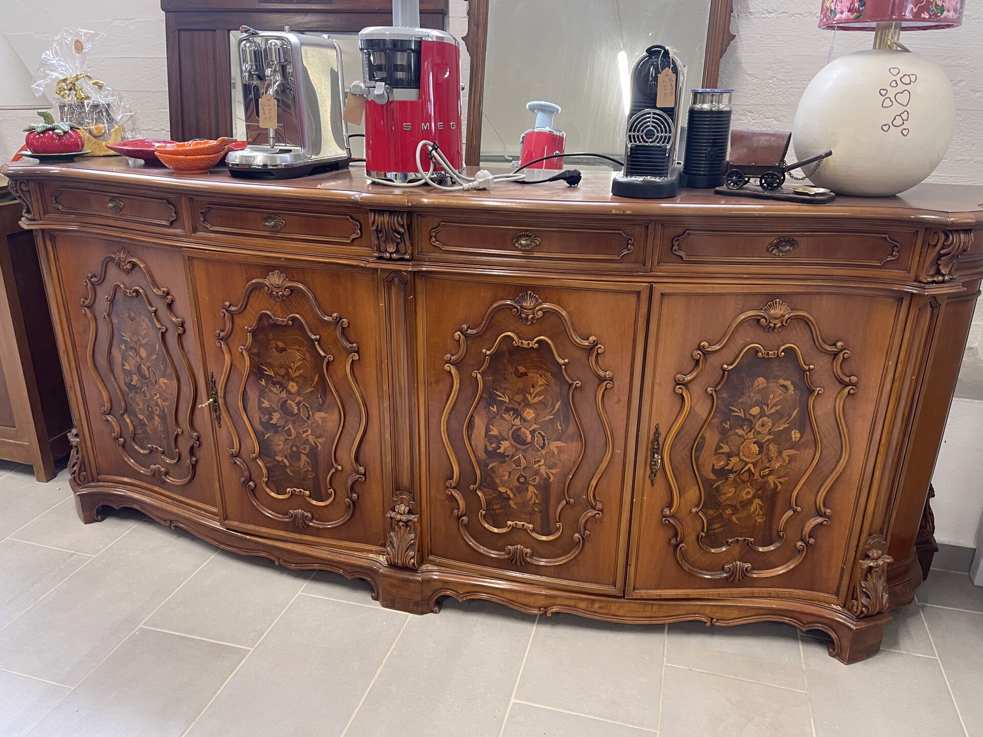 Credenza in noce con intarsi in radica