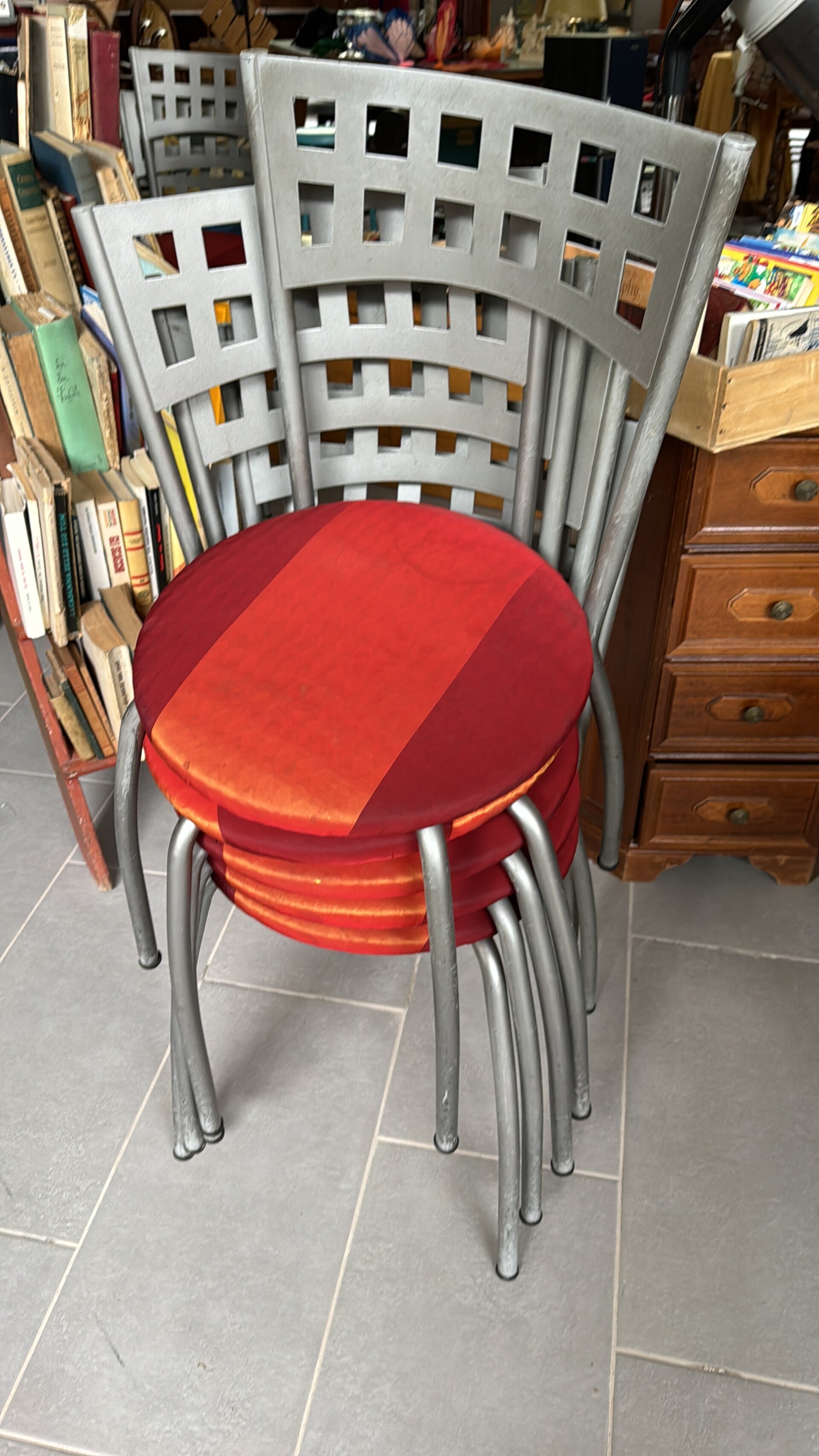 Sedie in ferro con seduta di colore rosso